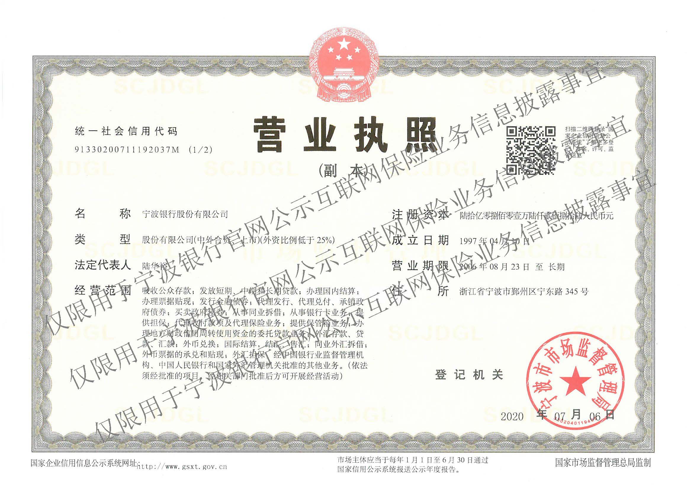 我行營業(yè)執(zhí)照、經(jīng)營保險業(yè)務相關許可證